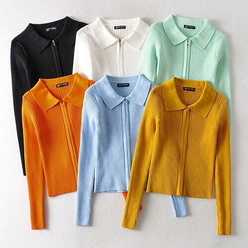 上下のジッパー 短いスタイル 長袖 ラペル ニットトップス 選べる6色 スリムフィット 百掛け 小さい新鮮な トップス アウター ボトムス レディース 秋 冬 半袖 長袖 きれいめ ロング 可愛い かわいい 膝丈 ひざ丈 20代 30代 40代 マキシ タイト レトロ モダン 白 黒 2023 RB-R6-1-NS-SA-057