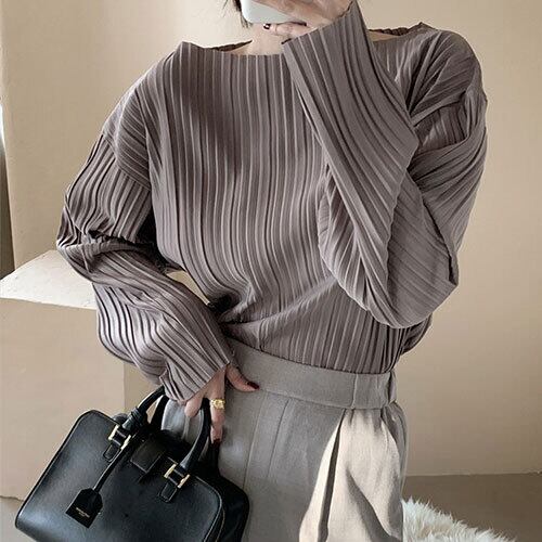 通勤する クルーネック 長袖 トップス しわしわ感 百掛け OL風 ゆったりする シンプル 気質 トップス アウター ボトムス レディース 秋 冬 半袖 長袖 きれいめ ロング 可愛い かわいい 膝丈 ひざ丈 20代 30代 40代 マキシ タイト レトロ モダン 白 黒 2023 RB-R6-1-NS-SA-091