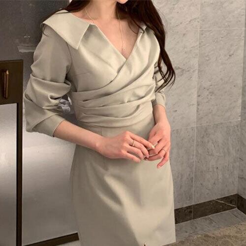 スリム 受け取って腰 パフスリーブ ワンピース レースアップ 気質 トップス アウター ボトムス レディース 秋 冬 半袖 長袖 きれいめ ロング 可愛い かわいい 膝丈 ひざ丈 20代 30代 40代 マキシ タイト レトロ モダン 白 黒 2024 RB-R6-2-NS-SA-012