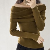 韓国ファッション トップス ギャザリング ニットトップス sweet系 スリム 一言の肩 トップス アウター ボトムス レディース 秋 冬 半袖 長袖 きれいめ ロング 可愛い かわいい 膝丈 ひざ丈 20代 30代 40代 マキシ タイト レトロ モダン 白 黒 2024 RB-R6-2-NS-SA-072