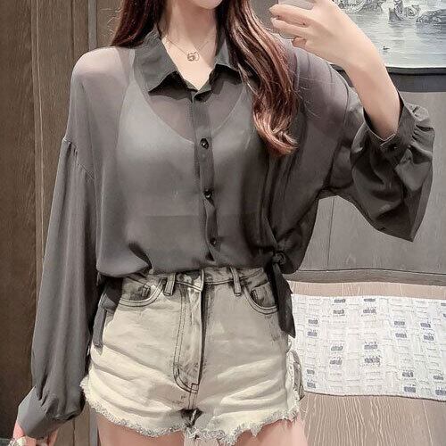 シアーシャツブラウス 韓国ファッション トップス アウター ボトムス レディース ワンピース 春 夏 半袖 長袖 きれいめ ロング 可愛い かわいい 膝丈 ひざ丈 20代 30代 40代 マキシ タイト レトロ モダン 白 黒 2024 RB-R6-3-NS-SA-018