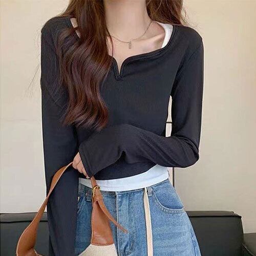 ショート丈 トップス キーネック ロングTシャツ 韓国ファッション トップス アウター ボトムス レディース ワンピース 春 夏 半袖 長袖 きれいめ ロング 可愛い かわいい 膝丈 ひざ丈 20代 30代 40代 マキシ タイト レトロ モダン 白 黒 2024 RB-R6-3-NS-SA-059