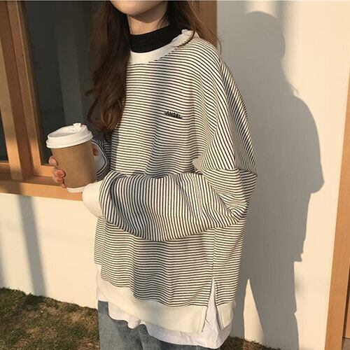 ボーダー裾 フェイクレイヤード 長袖 カットソー レディース トップス 韓国ファッション トップス アウター ボトムス レディース ワンピース 春 夏 半袖 長袖 きれいめ ロング 可愛い かわいい 膝丈 ひざ丈 20代 30代 40代 マキシ タイト レトロ モダン 白 黒 2024 RB-R6-3-NS-SA-064