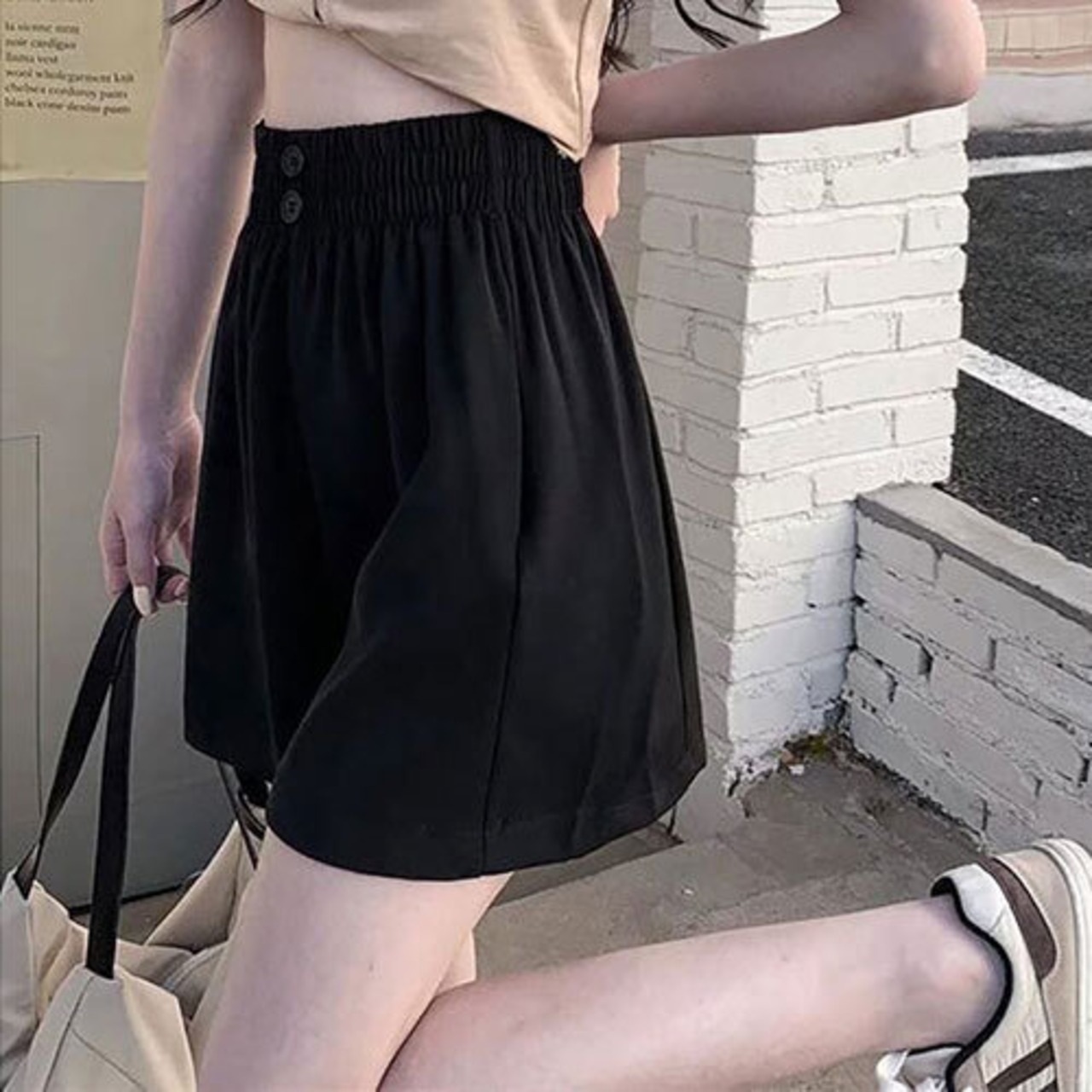 ハイウエスト ショートパンツ 韓国ファッション トップス アウター ボトムス レディース ワンピース 春 夏 半袖 長袖 きれいめ ロング 可愛い かわいい 膝丈 ひざ丈 20代 30代 40代 マキシ タイト レトロ モダン 白 黒 2024 RB-R6-3-NS-SA-080