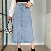デニムスカート スリット入り ミモレ丈 韓国ファッション トップス アウター ボトムス レディース ワンピース 春 夏 半袖 長袖 きれいめ ロング 可愛い かわいい 膝丈 ひざ丈 20代 30代 40代 マキシ タイト レトロ モダン 白 黒 2024 RB-R6-3-NS-SA-096