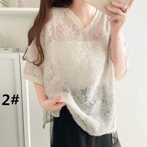 ブラウス シャツ トップス シフォンシャツ レディース Vネック 2024年新作 大人 可愛い トップス アウター ボトムス レディース ワンピース 春 夏 半袖 長袖 きれいめ ロング 可愛い かわいい 膝丈 ひざ丈 20代 30代 40代 マキシ タイト レトロ モダン 白 黒 2024 RB-R6-7-NS-SA-014