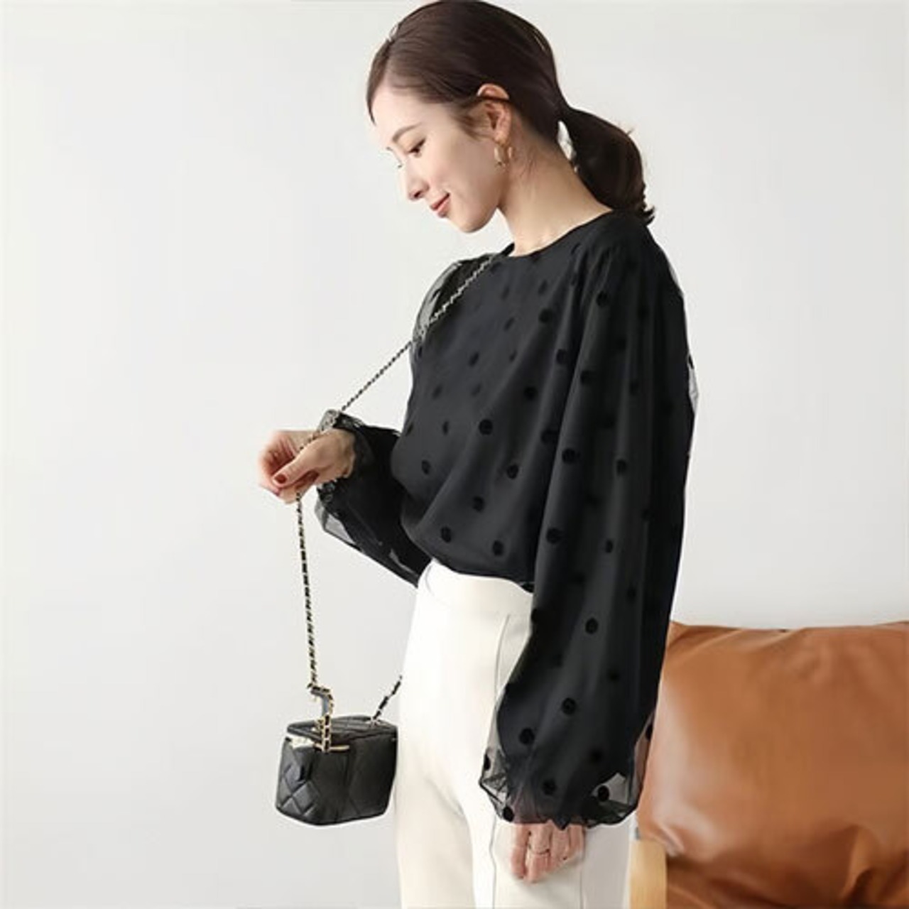 2024年春新作 トップス ドット柄 長袖トップス レディース ハブスリープ 気質 人気アイテム トップス アウター ボトムス レディース ワンピース 春 夏 半袖 長袖 きれいめ ロング 可愛い かわいい 膝丈 ひざ丈 20代 30代 40代 マキシ タイト レトロ モダン 白 黒 2024 RB-R6-7-NS-SA-041