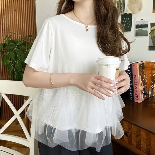 2024年夏新作 tシャツ レディース トップス ラウンドネック Tシャツ 半袖シャツ 異素材 トップス アウター ボトムス レディース ワンピース 春 夏 半袖 長袖 きれいめ ロング 可愛い かわいい 膝丈 ひざ丈 20代 30代 40代 マキシ タイト レトロ モダン 白 黒 2024 RB-R6-7-NS-SA-061