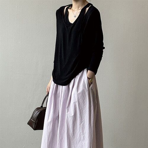 優しい着心地 韓国ファッション オフショルダー Tシャツ 2024秋 トップス 学生 上着 フェイク2ピース トップス アウター ボトムス レディース ワンピース 春 夏 半袖 長袖 きれいめ ロング 可愛い かわいい 膝丈 ひざ丈 20代 30代 40代 マキシ タイト レトロ モダン 白 黒 2024 RB-R6-9-NS-SA-003