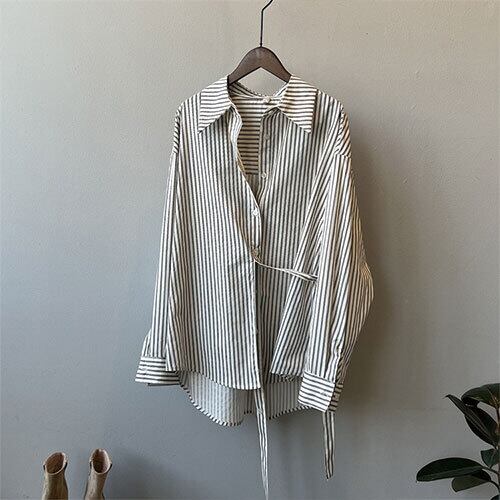 2024秋 ストライプ 襟巻き シャツ サイドボタンシャツ 怠惰な風 上着 トップス アウター ボトムス レディース ワンピース 春 夏 半袖 長袖 きれいめ ロング 可愛い かわいい 膝丈 ひざ丈 20代 30代 40代 マキシ タイト レトロ モダン 白 黒 2024 RB-R6-9-NS-SA-005