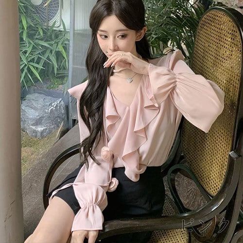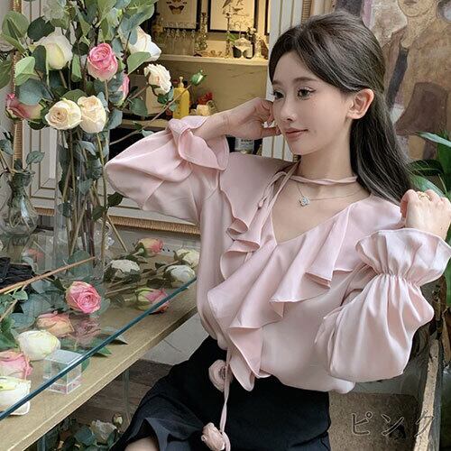 長袖シャツ フリル 切り替え 体型カバー 着痩せ sweet系 トップス アウター ボトムス レディース ワンピース 春 夏 半袖 長袖 きれいめ ロング 可愛い かわいい 膝丈 ひざ丈 20代 30代 40代 マキシ タイト レトロ モダン 白 黒 2024 RB-R6-9-NS-SA-017