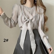 2024年秋新作 ブラウス シャツ 長袖ブラウス トップス レディース 透け感あり ラウンドネック 気質 トップス アウター ボトムス レディース ワンピース 春 夏 半袖 長袖 きれいめ ロング 可愛い かわいい 膝丈 ひざ丈 20代 30代 40代 マキシ タイト レトロ モダン 白 黒 2024 RB-R6-9-NS-SA-049