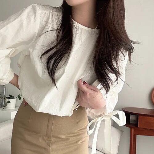 ブラウス シャツ 長袖ブラウス トップス レディース 2024年秋新作 ランタンスリープ ラウンドネック Sweet トップス アウター ボトムス レディース ワンピース 春 夏 半袖 長袖 きれいめ ロング 可愛い かわいい 膝丈 ひざ丈 20代 30代 40代 マキシ タイト レトロ モダン 白 黒 2024 RB-R6-9-NS-SA-075