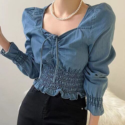 シャツ ブラウス ショット丈 フリル 切り替え スリム 着痩せ デニム sweet系 トップス アウター ボトムス レディース ワンピース 春 夏 半袖 長袖 きれいめ ロング 可愛い かわいい 膝丈 ひざ丈 20代 30代 40代 マキシ タイト レトロ モダン 白 黒 2024 RB-R6-9-NS-SA-077
