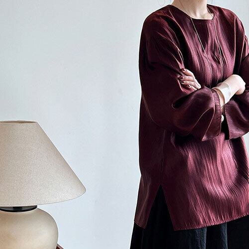 ラウンドネック ブラウス ゆったりする 垂れ感 シャツ エレガント トップス 上着 RB-R6-9-NS-SA-111 RB-R6-9-NS-SA-113