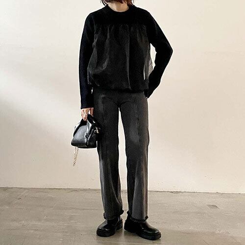 【2024新作】アルパカ×オーガンジー プルオーバー トップス アウター ボトムス レディース ワンピース 春 夏 半袖 長袖 きれいめ ロング 可愛い かわいい 膝丈 ひざ丈 20代 30代 40代 マキシ タイト レトロ モダン 白 黒 2024 RB-R6-11-NS-SA-033