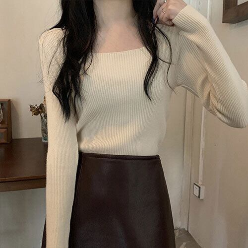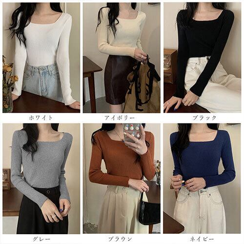 スクエアネック リブニットトップス 秋冬 トップス アウター ボトムス レディース ワンピース 春 夏 半袖 長袖 きれいめ ロング 可愛い かわいい 膝丈 ひざ丈 20代 30代 40代 マキシ タイト レトロ モダン 白 黒 2024 RB-R6-11-NS-SA-040
