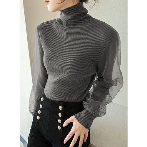 韓国風ファッション チュール 二重袖リブ タートルネック セーター トップス アウター ボトムス レディース ワンピース 春 夏 半袖 長袖 きれいめ ロング 可愛い かわいい 膝丈 ひざ丈 20代 30代 40代 マキシ タイト レトロ モダン 白 黒 2024 RB-R6-11-NS-SA-064