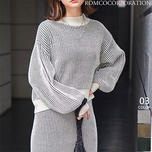ストライプ編み ボリューム袖 ニット トップス トップス アウター ボトムス レディース ワンピース 春 夏 半袖 長袖 きれいめ ロング 可愛い かわいい 膝丈 ひざ丈 20代 30代 40代 マキシ タイト レトロ モダン 白 黒 2024 RB-R6-11-NS-SA-077