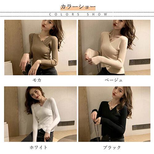 リブニット レディース カシュクール風 トップス アウター ボトムス レディース ワンピース 春 夏 半袖 長袖 きれいめ ロング 可愛い かわいい 膝丈 ひざ丈 20代 30代 40代 マキシ タイト レトロ モダン 白 黒 2024 RB-R6-11-NS-SA-084