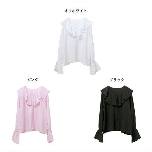 【2024新作商品♪】シアー フリルカラー ボリューム袖 ブラウス トップス アウター ボトムス レディース ワンピース 春 夏 半袖 長袖 きれいめ ロング 可愛い かわいい 膝丈 ひざ丈 20代 30代 40代 マキシ タイト レトロ モダン 白 黒 2024 RB-R7-01-NS-SA-007
