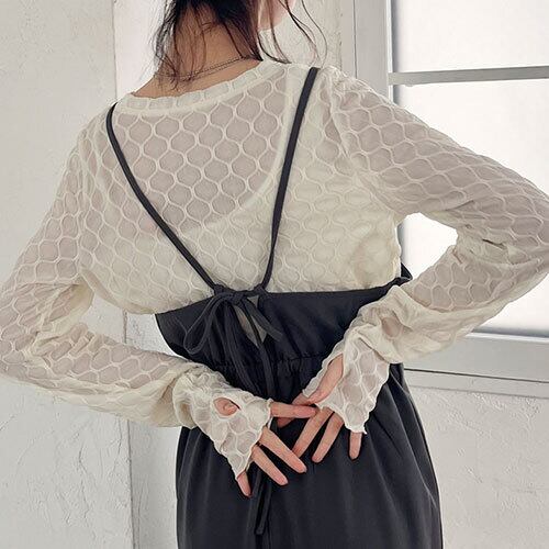 【2024新作商品♪】指開き ウェーブ柄 シアー トップス トップス アウター ボトムス レディース ワンピース 春 夏 半袖 長袖 きれいめ ロング 可愛い かわいい 膝丈 ひざ丈 20代 30代 40代 マキシ タイト レトロ モダン 白 黒 2024 RB-R7-01-NS-SA-022