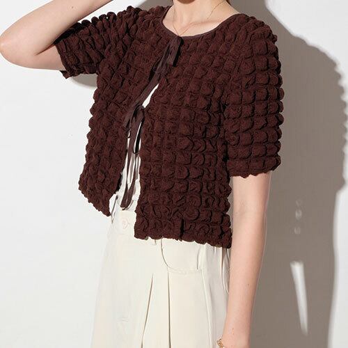 【2024新作商品♪】ポップコーン リボン カーディガン トップス アウター ボトムス レディース ワンピース 春 夏 半袖 長袖 きれいめ ロング 可愛い かわいい 膝丈 ひざ丈 20代 30代 40代 マキシ タイト レトロ モダン 白 黒 2024 RB-R7-01-NS-SA-044