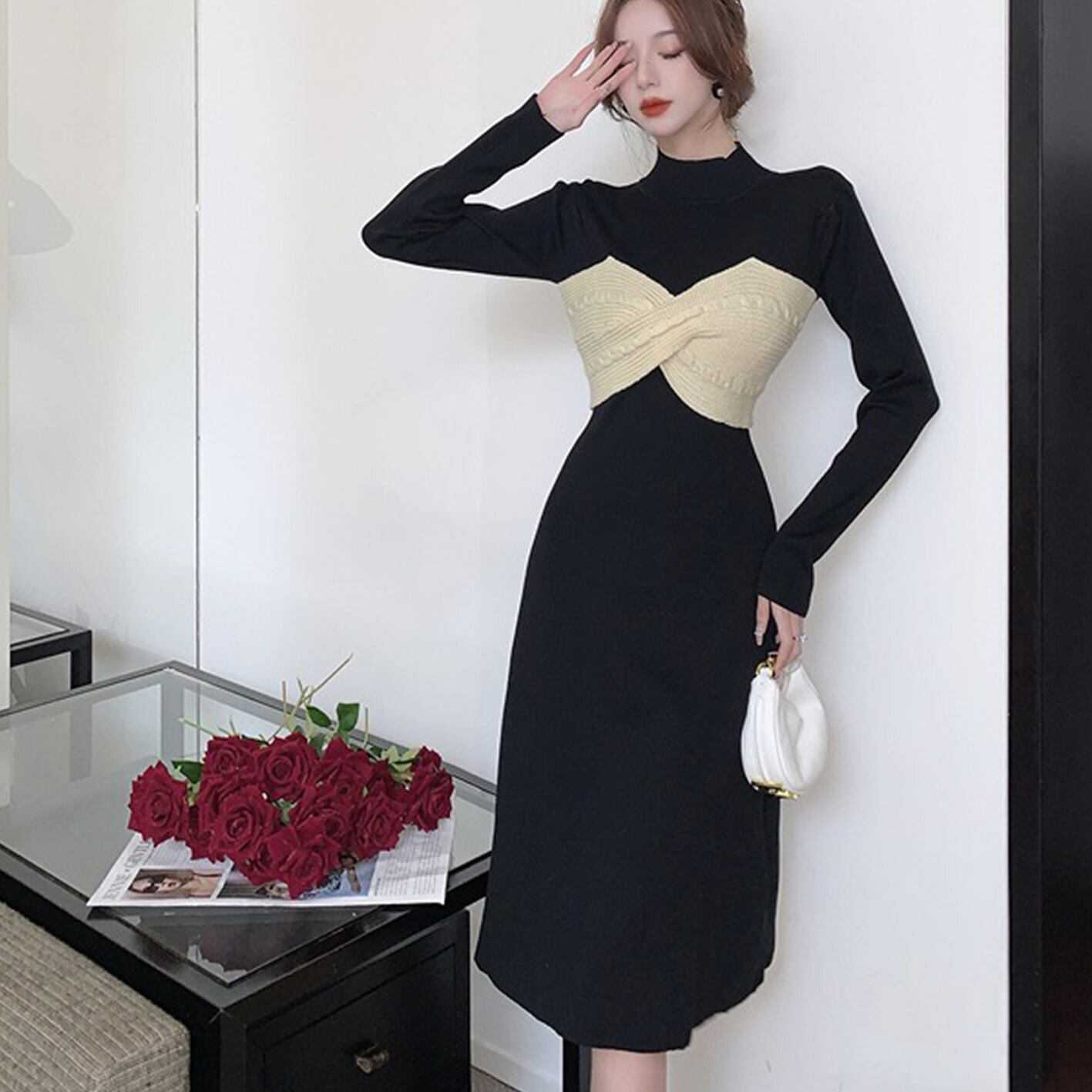 長袖ワンピース フリル 切り替え スリム 着痩せ カットソー シンプル トップス アウター ボトムス レディース ワンピース 春 夏 半袖 長袖 きれいめ ロング 可愛い かわいい 膝丈 ひざ丈 20代 30代 40代 マキシ タイト レトロ モダン 白 黒 2024 RB-R7-02-NS-SA-017