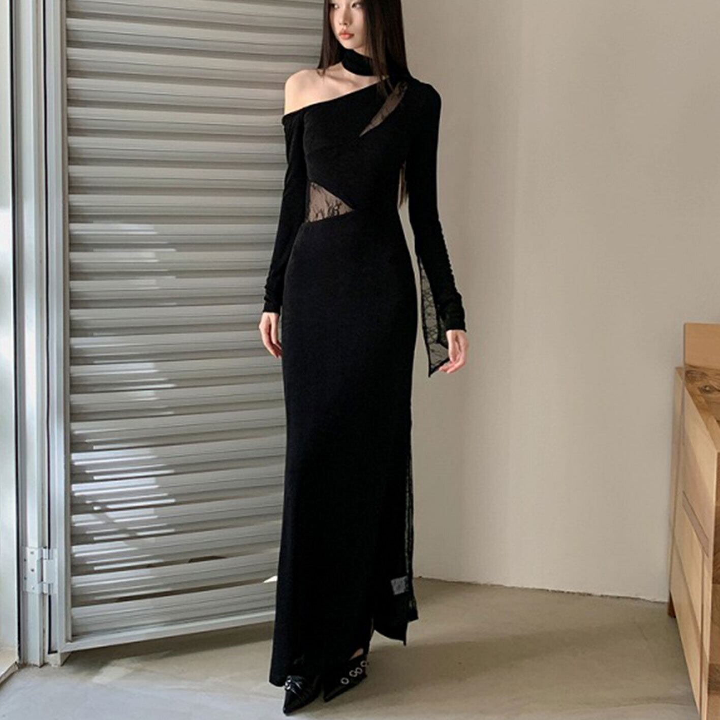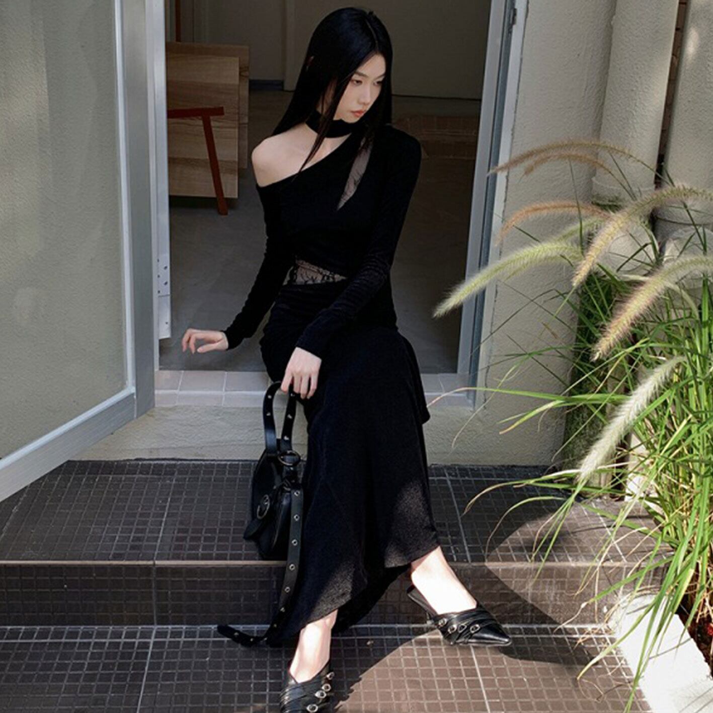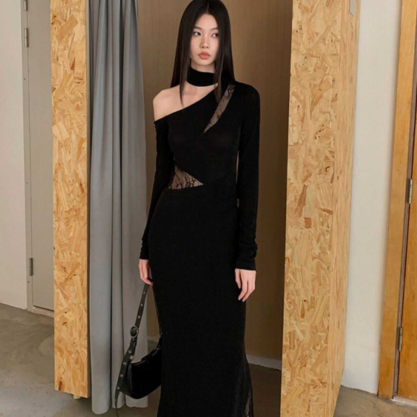 長袖ワンピース フリル 切り替え スリム 着痩せ シンプル トップス アウター ボトムス レディース ワンピース 春 夏 半袖 長袖 きれいめ ロング 可愛い かわいい 膝丈 ひざ丈 20代 30代 40代 マキシ タイト レトロ モダン 白 黒 2024 RB-R7-02-NS-SA-023