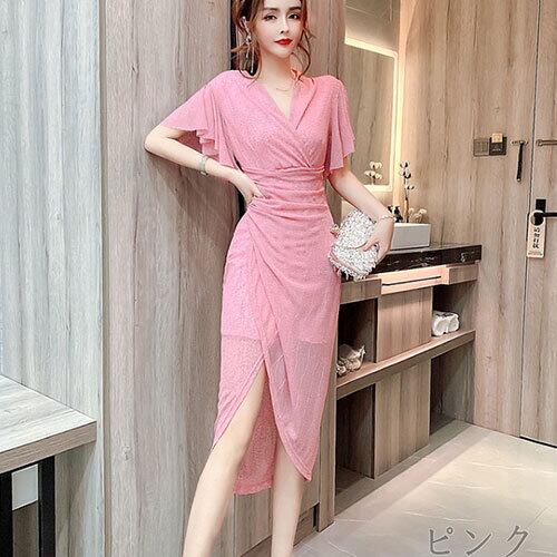 全3色 キャバワンピース スリット アシンメトリー シャーリング スリム 着痩せ セクシー トップス アウター ボトムス レディース ワンピース 春 夏 半袖 長袖 きれいめ ロング 可愛い かわいい 膝丈 ひざ丈 20代 30代 40代 マキシ タイト レトロ モダン 白 黒 2024 RB-R7-02-NS-SA-034