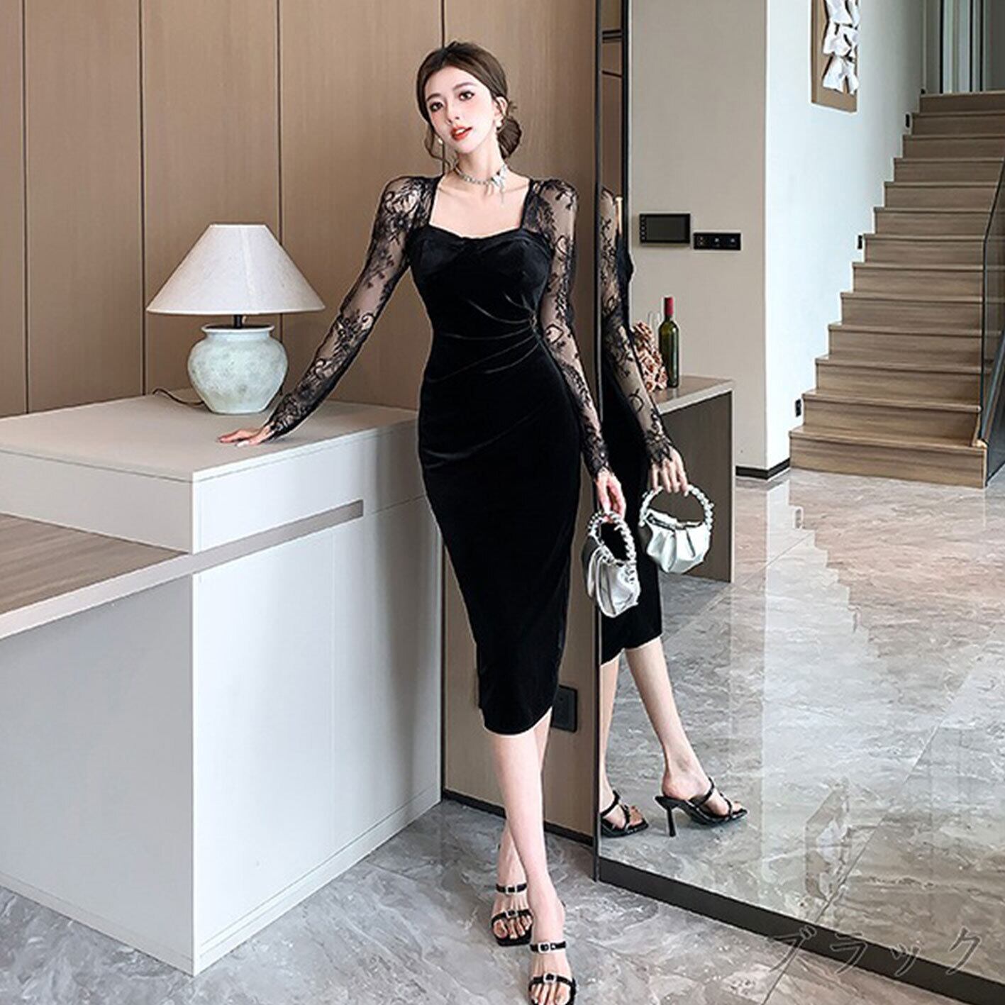 ワンピース 切り替え スリム 着痩せ レース セクシー トップス アウター ボトムス レディース ワンピース 春 夏 半袖 長袖 きれいめ ロング 可愛い かわいい 膝丈 ひざ丈 20代 30代 40代 マキシ タイト レトロ モダン 白 黒 2024 RB-R7-02-NS-SA-048